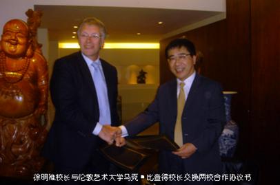 2007年5月东华大学代表团访问英国,徐明稚校长和伦敦艺术大学校长Michael Bichard爵士签署了“中国东华大学与英国伦敦艺术大学合作交流协议”。