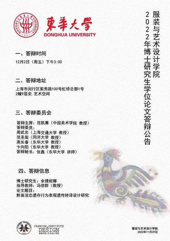 服装与艺术设计学院2022年博士研究生学位论文答辩公告