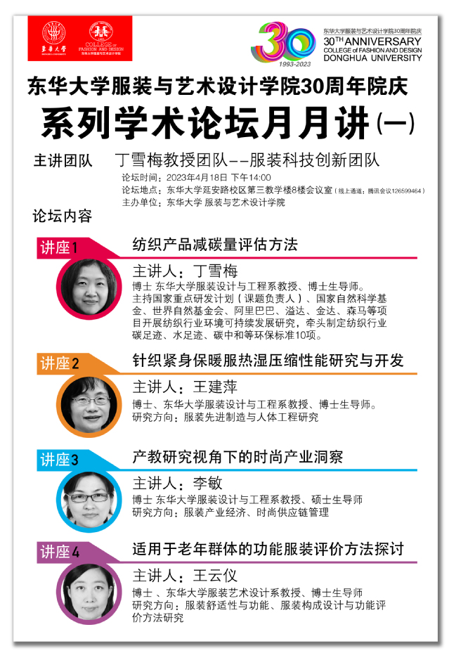 东华大学服装与艺术设计学院院庆系列学术论坛月月讲(一)预告