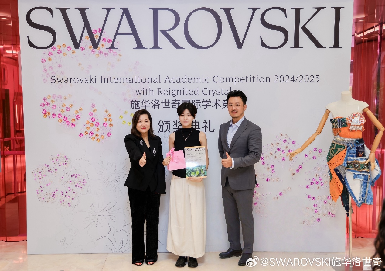 (施华洛世奇大中华区总裁Yvonne Chan与东华大学服装与艺术设计学院院长孙捷共同为总冠军李承遥颁奖)