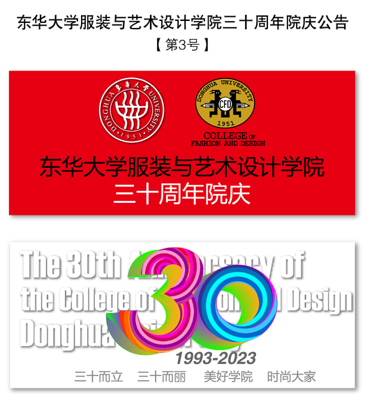 东华大学服装与艺术设计学院三十周年院庆公告【第3号】