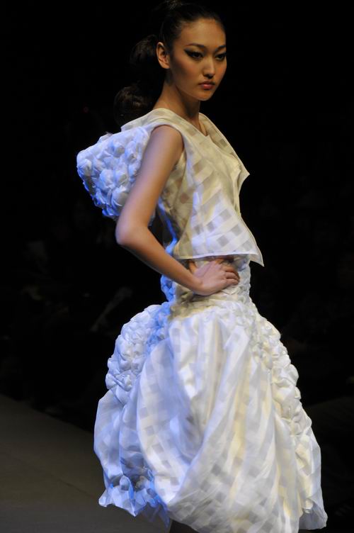 2008年11月,北京中国国际时装周迎来了一批充满朝气与活力的年轻时尚设计师,他们带着自己的无限创意、对服装的独到了解、对工艺的卓越把握来到了国际时装周的华美舞台上。在他们中间,又有这样一个群体尤为受人瞩目——他们就是来自东华大学服装·艺术设计学院服装设计中日合作班的学生们。此次动态秀参展作品以中日合作班08届毕业生的毕业设计作品为主,同时展出了部分一、二、三年学生的作品。所有作品均为平时教学的课程作业。这些中日合作班的学生在“3+