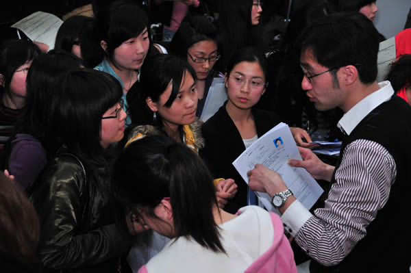 签约仪式后Esprit公司现场发布了今年数个全职岗位和兼职岗位的招聘信息,引起了台下同学们的热烈反响。毕业班同学纷纷投递简历,进行面谈。同学们表示,学院邀请国际品牌企业进校园进行针对性的人才招聘不仅带来了职位,更是增强了大家求职的信心。