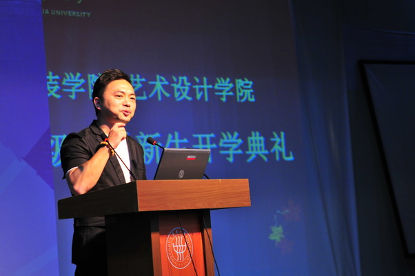 97届艺术设计专业的校友,太平鸟时尚女装有限集团董事总经理陈红潮先生也随后发言。陈红潮先生满含深情的回顾了学生时代,感谢了所有恩师的教诲和关爱,告诉新生感悟师恩师爱,学会爱和与人相处是比做学问更重要的事。