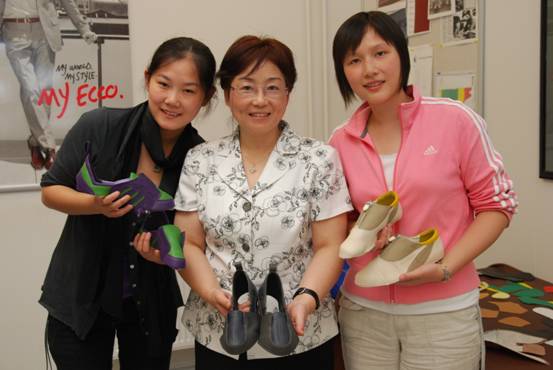 服装·艺术设计学院与世界上三大休闲鞋类品牌公司ECCO建立了友好的合作关系,并为我院培养鞋类设计师设立了ECCO奖学金,今年8月选拔两名优秀学生赴丹麦ECCO公司进行交流与实习。通过平时成绩考查、专业技能考试、口语面试等一系列的测试,学生田玉晶和黄政荣获了这次机会,我院并委派俞英 老师一同前往ECCO公司,师生在ECCO公司设计并制造了属于自己的ECCO鞋。