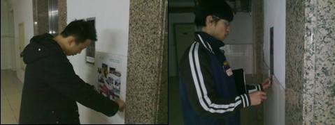 另外,志愿者们还擦扫了图书馆大厅的地面和藏书室楼梯间的卫生。尽管弯着腰擦擦扫扫一个上午每个人都很累,但是没有一个人嫌脏喊累。结束活动后,服硕091班的志愿者队的队员们挂着汗水脸上都流露出满足的笑容。