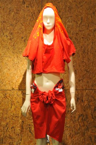 Mongi教授表示:有鉴于T恤改造这一较为特殊的选题,在授课之初,即要求学生们反复观察、体会T恤在造型、结构、色彩、面料、工艺及穿着使用方式等方面的特质,在此基础上,选择、抽离T恤的某些代表性元素,再通过改造性新元素的融入,最终形成了“Never finished”、“The story of body”、“Colourful mask”、“Rebuilding on the ruined city”、“Zip of love”、“Bad Time”等概念主题。