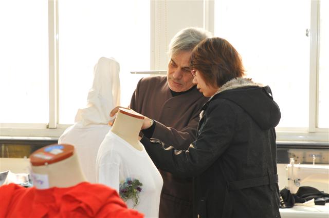 各组成员以既定概念为主线,进行了大量创意设计及草图绘制,又经老师悉心指导及筛选,最终确定了较为完整的色彩、款式及装饰手法等设计方案。开幕式上Mongi教授表示对这次学生完成的作品非常满意。本次课程不管是从最终作品的效果还是在制作过程中学生们的合作、交流等的积极态度都得到了Mongi教授的肯定。团队合作理念对于快节奏的服装行业,尤为重要。加强学生的表达、沟通及协作能力,一直是国内服装院校教学中较为薄弱的环节。而在本次课程整个设计及制作过程中,Mongi教授十分重视以小组为单位的工作形式。工作小组的形成首先是建立在成员间能力互补的基础上,正因于此,各组成员的分工明确,效率卓然,这亦是低年级学生如何能在短短数日内,得以完成大量作品的原因所在。