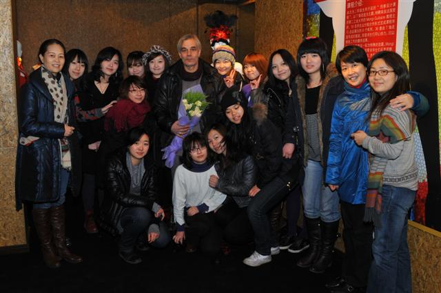 中日合作班创意设计课程的开设,不仅是为开发学生的创造性设计思维,同时,也要求学生们通过各种实验性手段来表达、实现及完善其设计意图。本次设计课程是以T恤改造为主题内容,特聘法国里昂第二工业大学的Mongi Guibane教授主讲,18名二年级学生以分组合作形式完成了整个课程的学习。在前后历时13日的教学过程中,师生们同心协力,日以继夜的工作,共设计、制作出6个系列、36套由T恤改造而成的服装,成果喜人。