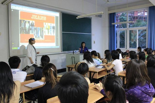 此次讲座共分三个部分,第一部分Karen老师为同学们讲解了美国的时尚产业,第二部分介绍了California由于其独特的人文和环境特征所发展的独有的时尚产业,阐释了时尚与市场的完美结合;第三部分Karen老师为我们介绍了她所执教的Academy of Art University的传统项目“牛仔裤改装设计大赛”,自豪地向我们展示了她的学生的获奖作品,最后同学们就自己所关心的问题向Karen老师提问,并一一得到了满意的答复。