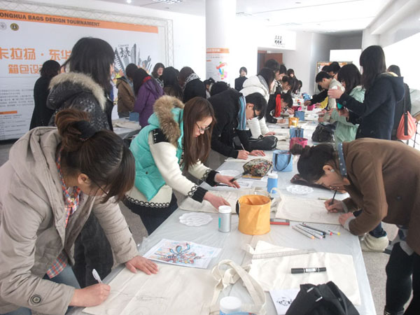 2011年3月16日,“卡拉扬—东华杯”箱包设计大赛的新闻发布会及环保袋现场彩绘活动在91官网