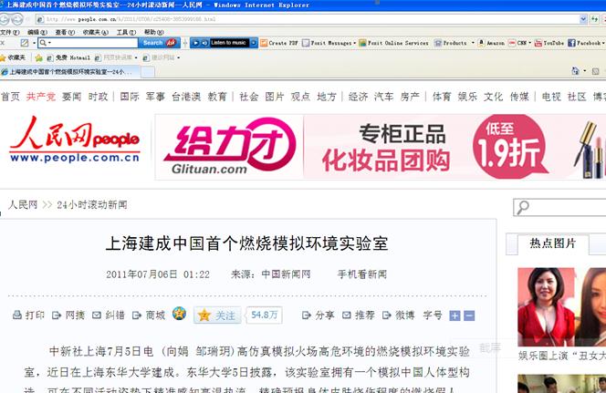 据悉,该实验室是中国内地第一个燃烧假人实验室,综合运用了生物传热分析技术、材料改性技术、人机工程制造技术、传感器技术、燃烧工程和自动控制技术等,达到了国际领先水平。(完)