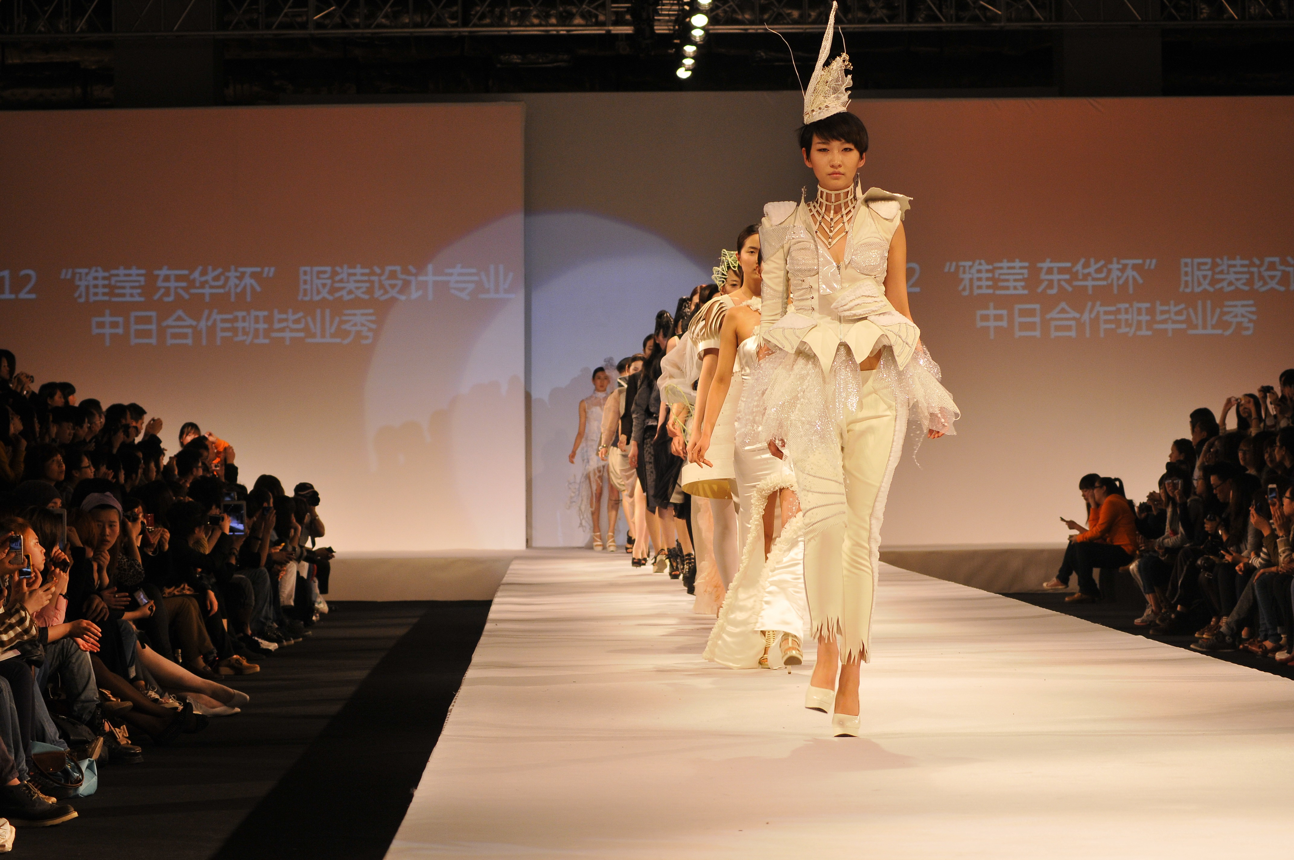 2012年4月19日晚19:30整,上海世贸商城,在大众的翘首期盼中,“雅莹·东华杯”中日合作班毕业生作品赛徐徐拉开了帷幕,本次秀场所展演的毕业设计作品是中日合作服装艺术设计专业学生留日期间由日本文化服装学院的老师指导完成,是中日合作班学生整个四年学习成果的一个总汇,其中包含了两个国家的两种文化,体现出91官网 和日本文化服装学院合作办学的高质量和高水平。