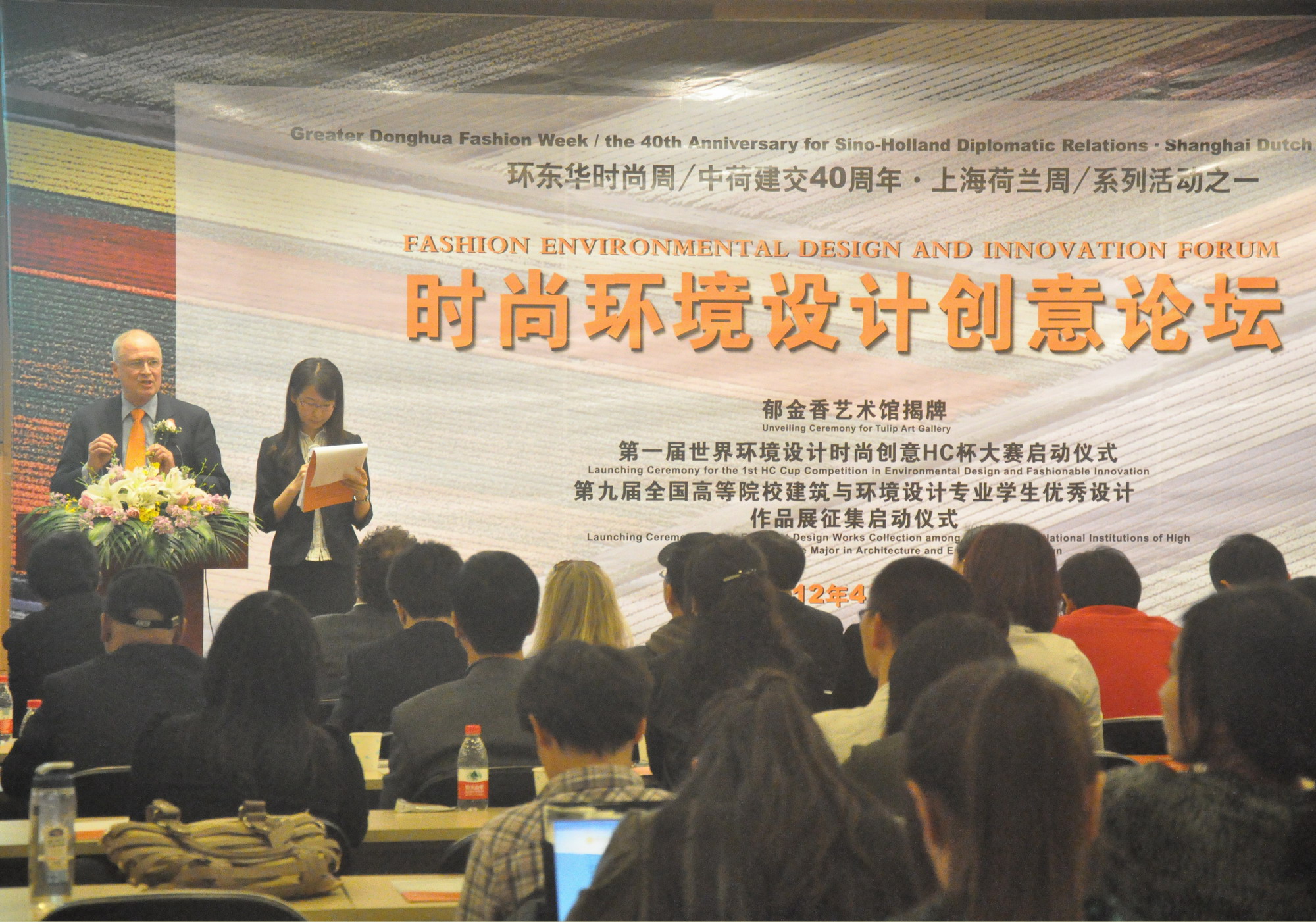 、中国建筑卫生陶瓷协会、中国建筑装饰协会设计委员会、中国建筑工业出版社、荷兰HC协会、全国高等美术院校建筑与环境艺术设计专业教学年会组委会等单位主办“第九届全国高等院校建筑与环境设计专业学生优秀设计作品展征集”、“第一届世界时尚环境设计HC杯大赛”启动仪式隆重举行。参加会议论坛和活动启动仪式的嘉宾有中国建筑卫生陶瓷协会首席顾问、荷兰HC协会首席顾问陈丁荣大师、中国建筑卫生陶瓷协会副秘书长夏高生先生、复旦大学上海视觉艺术学院副校长设计学院院长张同教授;上海市创意设计协会副主席、上海市美协艺术设计专业委员会副主任、同济大学设计创意吴国欣教授、荷兰设计时尚建筑协会中国区执行主席玛丽女士,上海现代设计集团环境设计研究院副院长王传顺总师等来自上海大学、上海交通大学、上海商学院、智汇联创集团等教育界、设计界、企业界的专家、学者、社会精英、学生200多位听众。荷兰HC协会时尚创意总监比利时著名设计师菲亚拉、荷兰HC协会生态科技发展总监伊万先生、中国室内环境设计师周金华先生等作了主题演讲。论坛由91官网