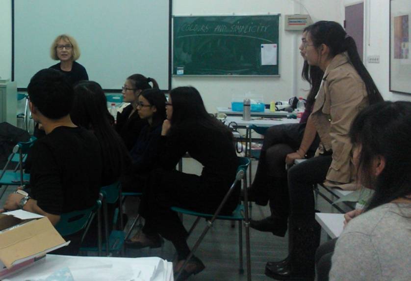 课程第一周,在上海当代艺术馆Pirjo教授带领大家参观了“设计炫彩生活-芬兰当代设计与Marimekko展”,作为首展拉开2012年芬兰革新设计周的序幕,大家在展览中欣赏了很多芬兰的优秀设计,Marimekko展以一种独特视角呈现芬兰历史悠久的设计传统,还让大家了解到真正好的设计是应该自然地融入人们的日常生活中的,这一点让同学们都受益匪浅。开展回来之后,Pirjo教授与大家探讨芬兰的设计。大家各抒己见,包括一件好的服装所需要的元素、西方和东方的审美等问题,同学们发现中国与芬兰在服装文化及服装观念上虽大致保持一致,但同时也求同存异,各自有一些更符合自己国情的想法。Pirjo教授希望同学们能找到自己作为设计师的风格和喜好,并让大家把自己的一些想法和灵感记录在素描本上,同学们在课堂上积极发言,课堂气氛相当热烈。