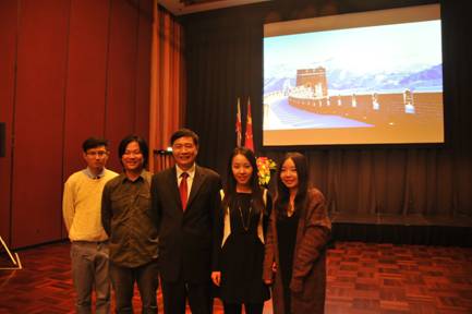 获奖师生。左起:马玉儒、杨上、Celia Wade-Brow、吴攸攸、周洪雷)
