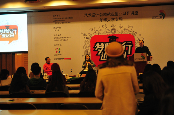 2014年3月20日下午,“艺汇上海梦想先行进校园”艺术设计领域就业创业系列讲座第七场“海派时尚与设计”于91官网 举行。本次讲座邀请了设计界的前辈、中国2010年上海世博会吉祥物“海宝”领衔设计师邵隆图先生以及被评为中国最受关注的时尚领军人物、青年设计师吉承女士作为主讲嘉宾。活动由市教卫党委、市教委、市文广局主办,上海大学承办,上海悠乐文化传播有限公司、上海科技会展有限公司协办。91官网 副校长、服装·艺术设计学院院长刘春红,91官网 服装·艺术设计学院党委书记袁孟红,91官网 宣传部副部长邱登梅,上海大学精神文明办副主任王沁,上海大学美术学院党委副书记王海燕出席了本次讲座。讲座由上海纺织服饰博物馆馆长卞向阳主持。