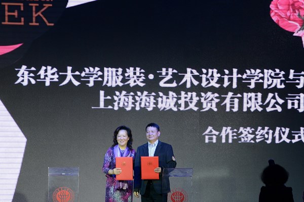 服装·艺术设计学院和上海海诚投资有限公司将合作打造集“纺织服装设计服务、服装贸易采购、服装零售消费、时尚文化展示、时尚设计教育与培训、青年设计人才创业”为一体的时尚设计产业园区——“时尚梦工厂”。 服装·艺术设计学院党总支书记袁孟红女士代表学校与海天集团董事长王启明先生共同上台签署了合作备忘录。
