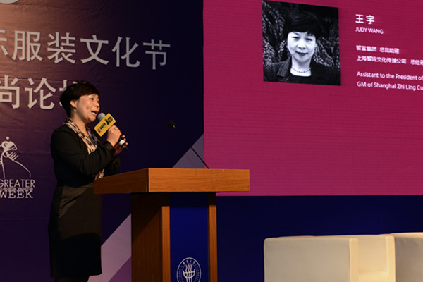 副校长、服装艺术设计学院院长刘春红致欢迎辞,希望学校能通过海派时尚引导流行趋势,助力上海建设时尚之都。上海智富集团总经理王宇也作嘉宾致辞,介绍了目前集团正在致力于创建的“风尚上海公共信息服务平台”。