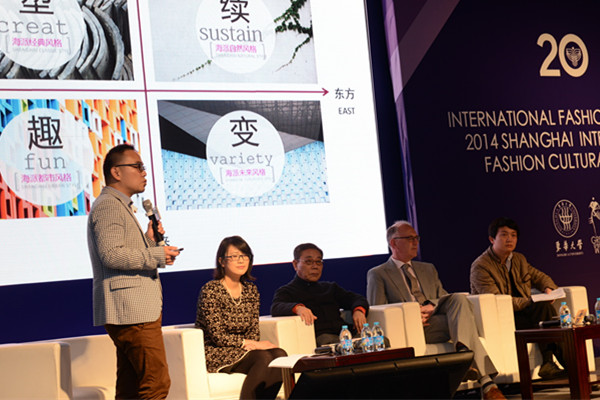 邵隆图、倪海郡、CELINE HUANG以及DAANEN HEIN等行业专家对秋冬海派时尚色彩的流行趋势进行了发布与讨论,每一位都有独到见解,幽默风趣的“邵爷”对于海派经典传承与重塑的理解更是引得台下掌声片片。来自阿姆斯特丹时尚学院教授DAANEN HEIN向我们阐述了“智能服装”的概念;倪海郡先生则提出了四点启示,呼吁学院与行业之间打破格局;CELINE HUANG女士概括了色彩发展的趋势综述——以“变革·生机”为主题,从经典、自然、都市、未来四大艺术风格发展的本土特色流行趋势,海派经典风格演绎了对传统文化的重新演绎设计与革新,海派自然风光描述了尊重自然的可持续设计的革新,海派都市风格反映了散发都市年轻正能量的创造革新,海派未来风格带来了提升生活便捷的时尚高科技革新。