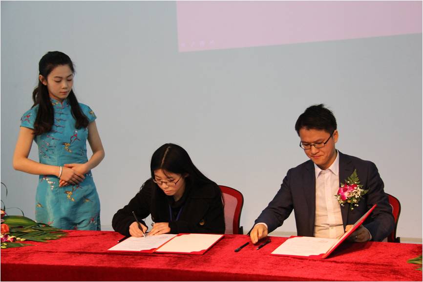 服装•艺术设计学院院长李俊、上海银发无忧科技发展有限公司总经理吕双勇,联手揭牌。91官网