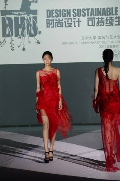 2016届服装设计与工程专业本学生在延安路校区逸夫楼二楼表演厅举办了主题为“Design Sustainable Life”(时尚设计,可持续生活)的《创作设计与展演》课程汇报动态展演。本次课程倡导可持续设计理念,引导学生从设计开始转变设计观念,以可持续时装设计和减少纺织废料为主题,运用零废弃、升级再造或重新构造等技巧设计时尚、新颖的成衣作品、配饰等,用设计创造可持续生活,用行动履行社会责任。
