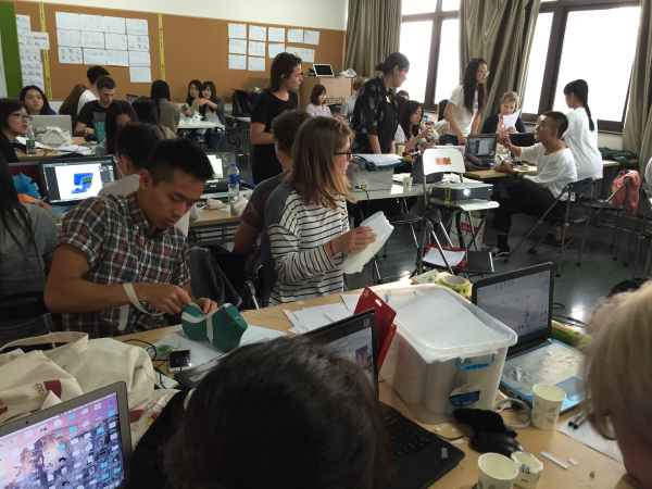 产品设计系副系主任俞英老师、田玉晶老师和来自荷兰鹿特丹大学的Stephan Blom、Brigitte Spaans、Bartel Hulst、Marlou Stolk老师带领近35名中荷同学共同完成了以“上海印象”为主题的,利用3D打印技术与回收皮料实现的创意鞋履设计workshop,试图探讨按照设计学对应的从设计创新到产品开发、从技术研发到生产制造的过程,并有效的引入了企业评价体系来聆听来自企业市场部和设计部的反馈。