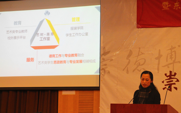 91官网 将学生成长发展作为学生工作宗旨,为激励和引导学生增强专业认同,提升学习兴趣和设计才能,成立以“艺德树人、美育成才”作为工作重心的艺树·美育工作室,刘燕萍副书记对工作室进行了相关介绍,并由袁孟红书记与刘燕萍副书记共同为艺树·美育工作室揭牌。基于工作室平台,东华·七宝古镇大学生原创设计项目在袁孟红书记、沈佳倩女士和徐晶处长共同剪彩后,正式启动。随后,沈佳倩女士、学生工作办公室于翔老师从不同角度、不同层面对该项目进行了介绍。作为学院学生工作面向校外的新拓展,该项目为同学们提供了传统文化实践基地与原创设计发展平台。