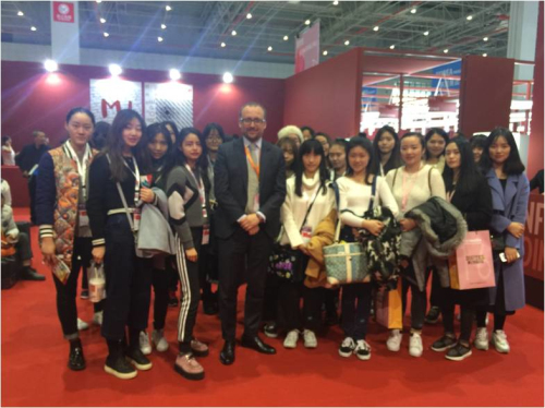 3月16日 ,BeppePisani先生带服装设计系部分同学来到中国国际纺织面料及辅料博览会的意大利展馆参观,同学们参观了数家意大利品牌的面辅料产品,受益匪浅。