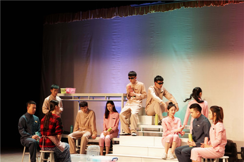 特别是4月21日晚,艺林盲人按摩中心的部分盲人推拿师也亲临了演出现场。在话剧排演期间,他们曾给予师生大力支持,他们的心与舞台上的演员紧紧连在一起。虽然他们不能完整的看见演出,但是他们一定可以用“心”读懂演职员们以及观众的赤诚之心。