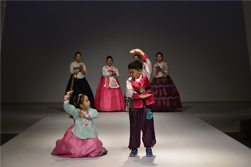 张顺爱副教授和国际交流学院的车亰花老师参加表演,得到了广大师生的热烈欢迎。演出以“春之声——时尚韩服”展开,接着是“爱之歌——传统韩服”,紧接着是“泛水荷塘”、“冰菊物语”、“丝巾旗袍舞”、“秋之韵——宫廷韩服”、“旗袍雅致”、“花之谷——艺术韩服”等节目,最后以“阿里郎——韩服盛宴”结尾。舞蹈与表演相结合的此次时尚秀以创意形式传承民族服饰经典,传播民族文化,展现韩服与旗袍之美丽,展现了当今职业女性的风貌。