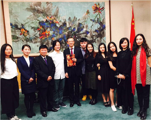 周洪雷创意服装设计团队的成员,周洪雷副教授代表团队向大使王鲁彤先生汇报了91官网