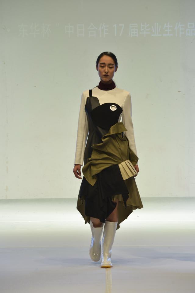 2017届学生是中日合作班第11届毕业生。“3+1”的联合培养模式,带给中日合作班学生的不仅有出色的设计创作能力与制版制衣技术,更有国际化的视野和理念。这些作品均为他们在日本文化服装学院交流学习时期制作完成,这群年轻的设计师怀揣着对服装设计独到的理解与感悟,将设计思考、生活经历与文化态度融入作品中,风格鲜明,各具特色,体现了中日合作专业融创新性、时尚性、技术性于一体的办学理念,呈现了一场精彩纷呈的毕业秀。