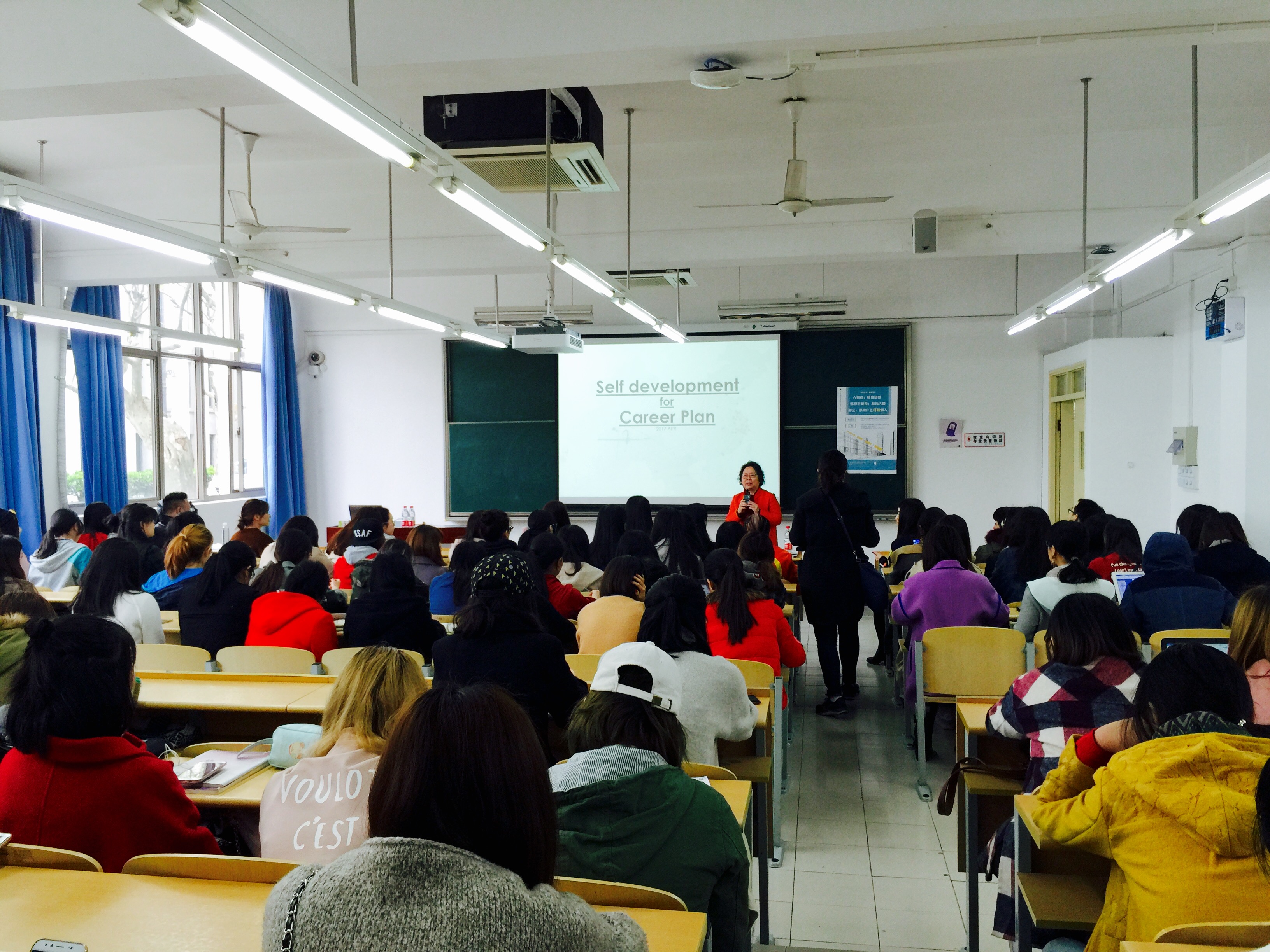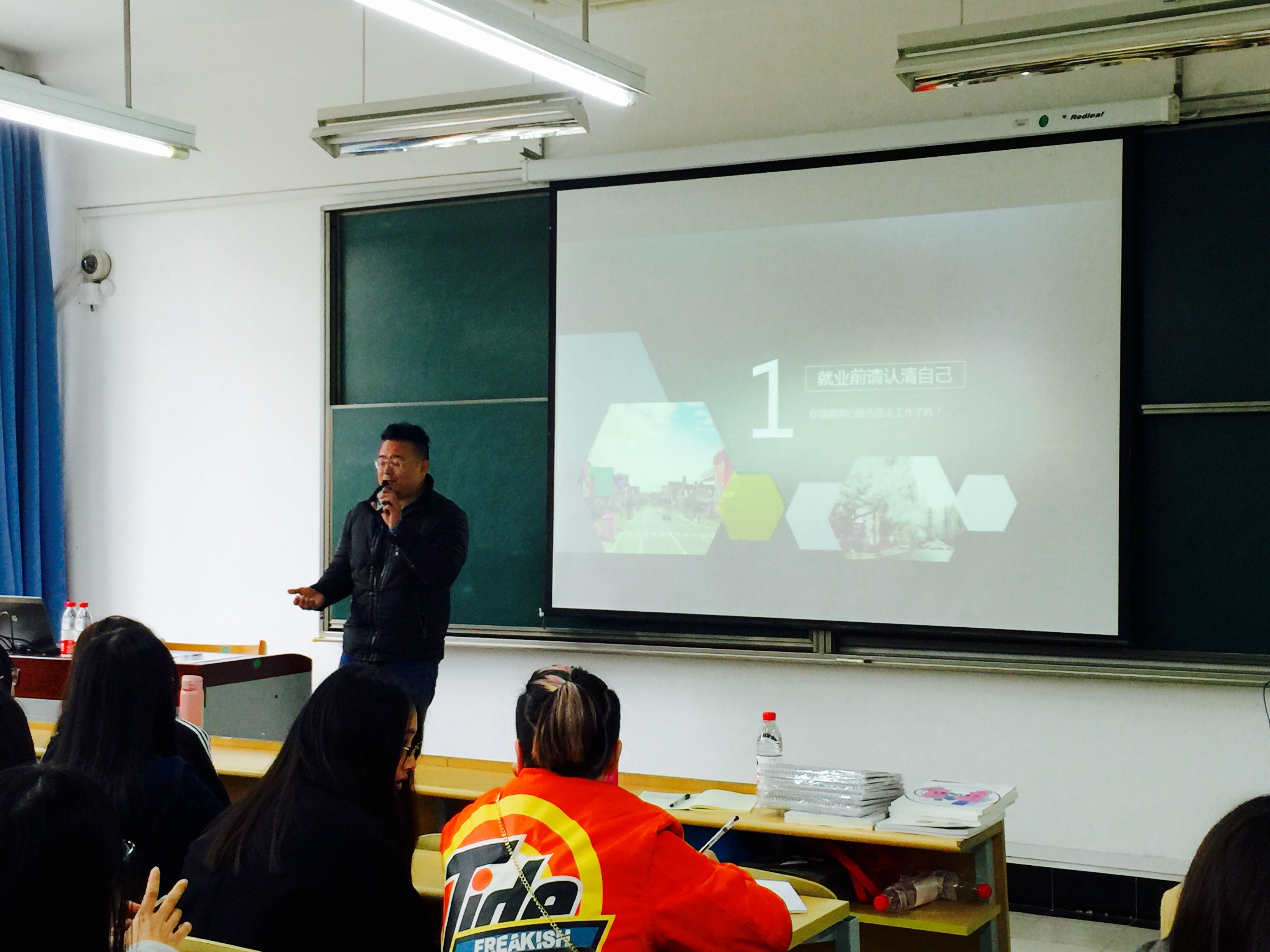 张祖芳老师鼓励学生从定一个小目标开始,不断学习和积累。她认为年轻就是我们最大的资本,我们应该利用好我们所拥有的资源,厚积而薄发。王炜结合自己宝贵的学习和工作经验,教同学们除了认真学习专业知识以外,应该如何提升自己的竞争附加值,并分享了许多实用的专业学习和工作小技巧。陶威铭用形象生动的案例和活泼风趣的说话风格让同学们印象深刻,他希望借自己的经验消除同学们对专业前景的迷茫,不断实践,找准定位,鼓励大家为自己的人生目标积极进取。