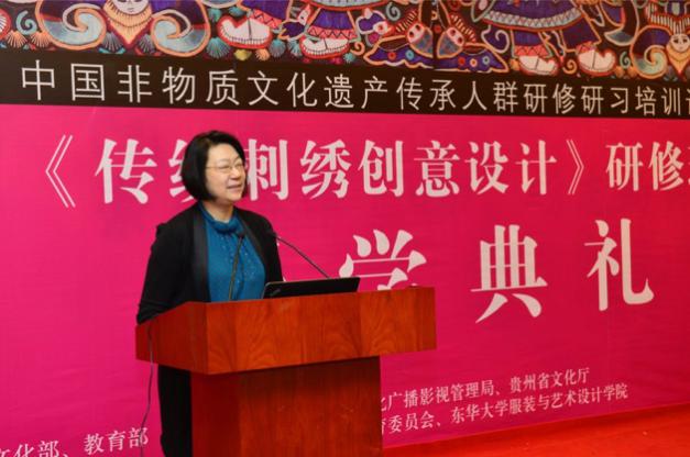 最后,91官网 副院长冯信群代表学院致辞。冯院长表达了对贵州风土人情及传统文化的高度赞扬,引用孔子名言“志于道、据于德、依于仁、游于艺”对本期中国非物质文化遗产传承人群研修研习培训计划《传统刺绣创意设计》研修班的主题进行了解读,表示希望将贵州传统文化、技艺与东华创意、设计结合在一起,把中国优秀的传统文化传承发展。