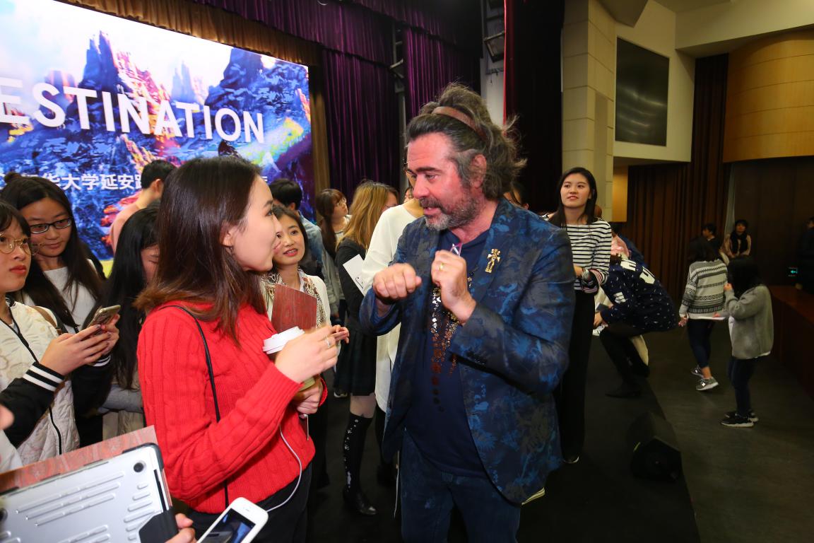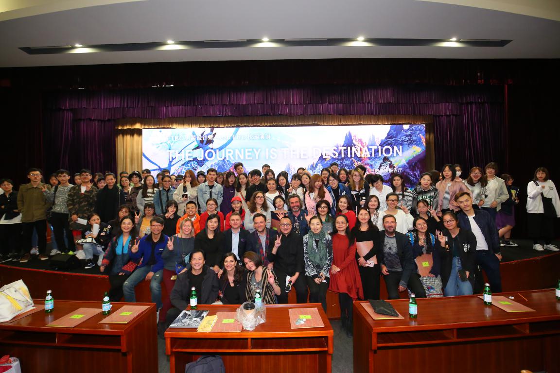 参观结束后,KEAN先生跟91官网 的师生们分享了“The Journey Is The Destination”(旅行即是目的地)的精彩讲座。Kean先生激情风趣的演讲将ETRO神秘迷人品牌个性展现的淋漓尽致,其在舞台上的行云流水更是对ETRO自由优雅的品牌基因最为恰当的诠释,设计师的不拘一格与品牌的不羁个性水乳交融,让师生们见到了华贵且自然的ETRO。互动环节,同学们更是围绕设计师建议、设计灵感、品牌理念等内容踊跃提问,KEAN先生不仅详细解答了同学们的提问,并向提问同学赠送了由Kean先生亲笔签名的ETRO品牌笔记本等礼物。最后,由ETRO全球公关总监 Alessandra Tirolo女士启动ETRO五十周年与东华设计精英的纪念作品征集,获奖者将有机会亲临米兰参加品牌五十周年庆典,获奖作品将作为五十周年限量版投入生产。