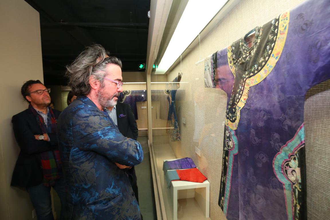 10月19日下午,受服装与艺术学院之邀意大利一线奢侈品牌ETRO男装设计总监Kean Etro先生到访91官网 。Kean先生及其团队首先在91官网 副院长王朝晖老师陪同下参观了91官网 纺织博物馆,一件件极具民族特色的藏品使其倾心、驻足留恋,在随后交流中表示对其创作灵感有很大的触动与参考价值,并且欣然应允馈赠一件ETRO的经典服装给东华博物馆收藏,以供交流学习。