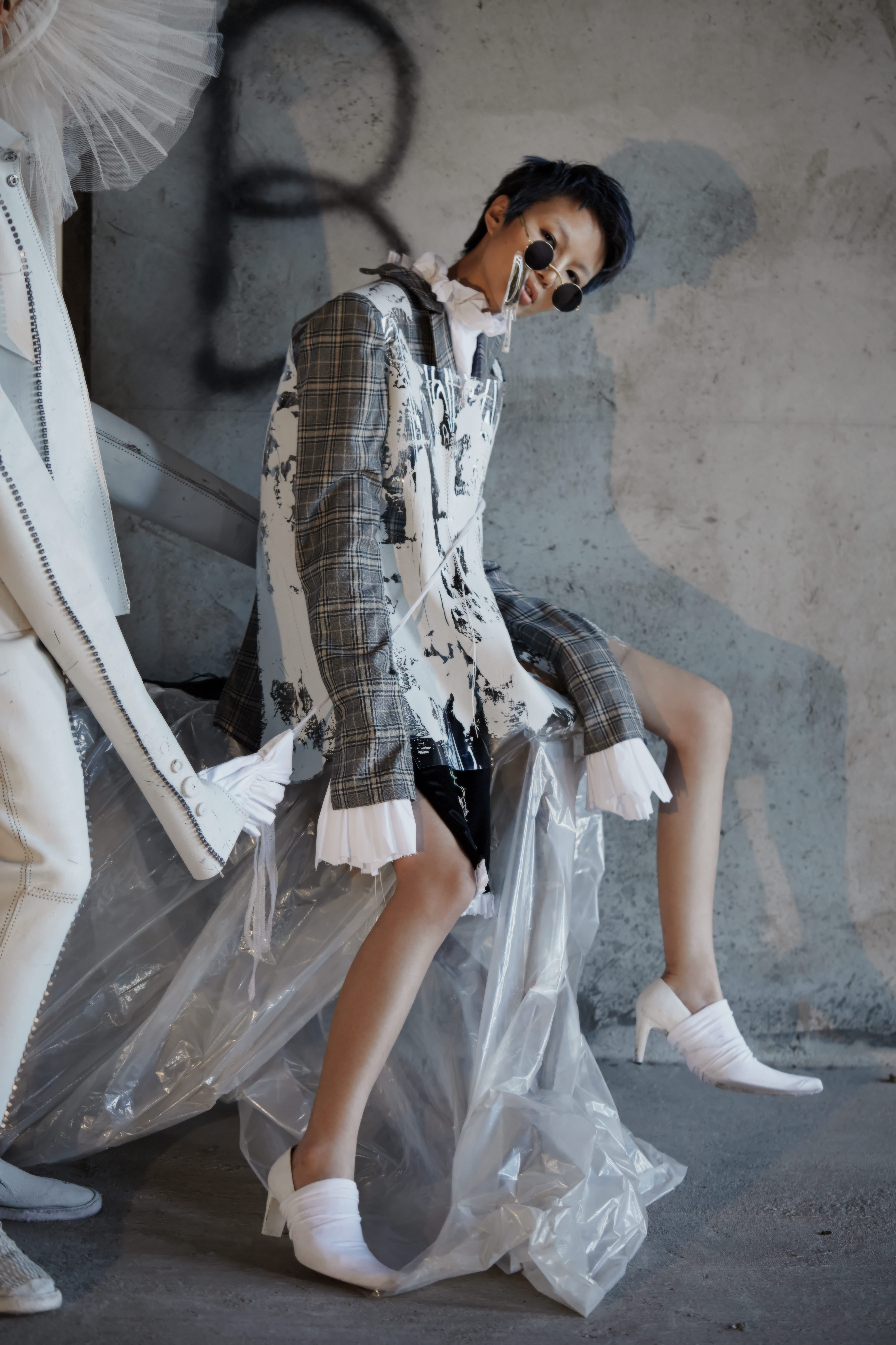 李嘉宝设计作品《Bethlem》,灵感发源于中世纪臭名昭著的疯人院,那里的病人供人娱乐,设计师认为,理智和疯癫并不泾渭分明,有时疯人与常人其实放错了地方。这一系列设计有意模糊了疯人与疯人院游客的界线,利用水泥和绸缎、干花和输液袋等跨界材料进行创新应用,将暗示性的细节元素分布在衣服的各个角落,表达不同的情绪与病症,力求表达病态美学,实则为药的设计主题。“从拿到大赛主题,到寻找灵感,再到自我主题的深入研究跟创作,是一个很有意思的过程,”李嘉宝发现了新的面料再造的可能性,也引发了她对面料再造方面的浓厚兴趣。李嘉宝感谢学校和学院给予的学习平台,“导师周洪雷老师的设计引导,给了我很多帮助,更让我有了新的进步,”李嘉宝表示会好好珍惜巴黎羽饰工坊实习的机会。