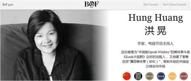 洪晃入选BoF500