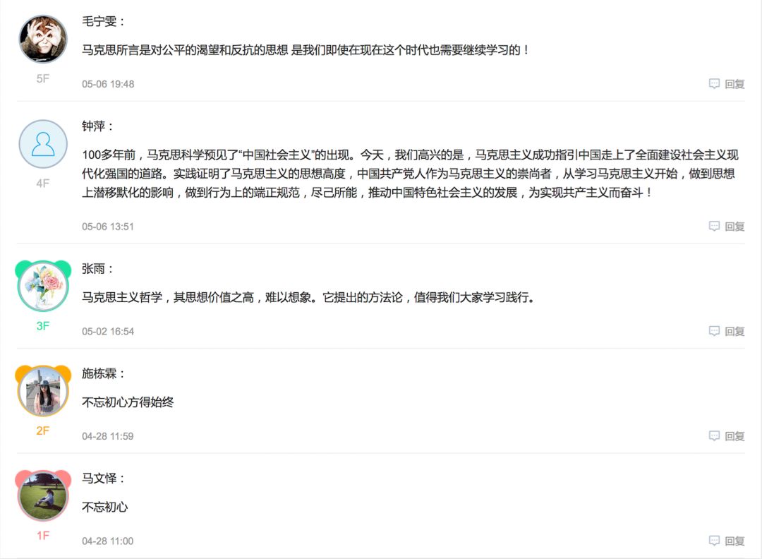 学生党员们通过参与“纪念马克思诞辰200周年”系列活动,纷纷表示更加深入地了解学习了马克思的生平及其伟大思想,今后会以马克思主义武装头脑,将马克思的精神和马克思主义理论运用到平时的工作生活中,抓住新时代的新机遇,承担新时代的新使命!