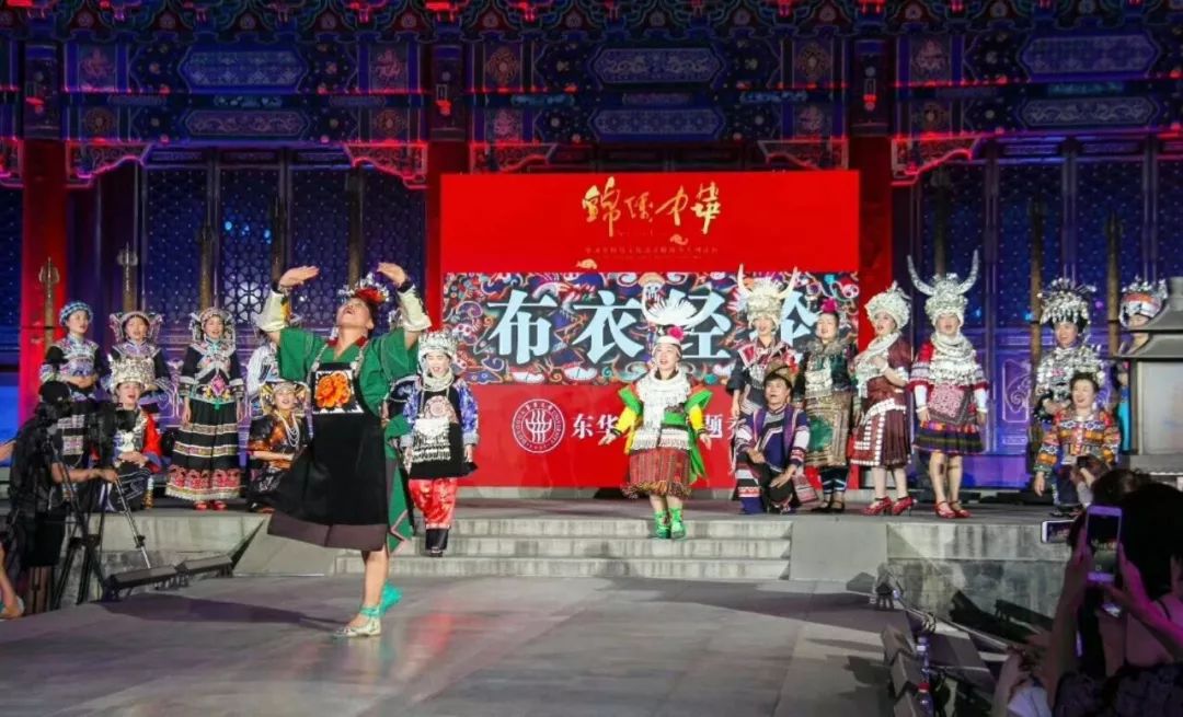 这些传承人学员能够自信满满地亮相于恭王府,离不开东华研培老师们的悉心指导和鼓励。许多学员表示,东华研修班学习几乎让他们脱胎换骨,不仅眼界大开、观念大变,技艺也大有精进。传承人与东华学生结对设计的32套服装铺满了银安殿80米长的巨型T台,将东华非遗研培成果淋漓尽致地展现在世人面前。秀导徐幸芝副教授看到大家的精彩表现直呼“棒棒棒!”。而一个月来全身心投入班级管理为非遗研修班奔忙的班主任毛慧慧老师则激动得几乎要流泪,节目最后设计师陈彬教授的发言更起了画龙点睛的作用。