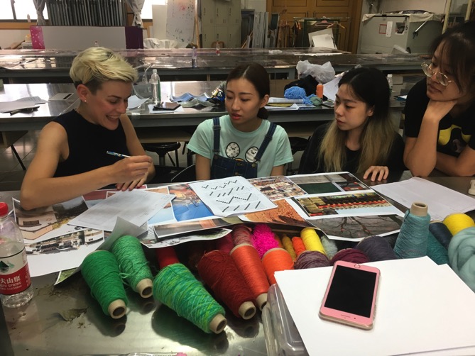 第四日,Elizabeth为大家带来自己在英国的作品并与大家对如何使自己的织物形成系列性进行了热烈的讨论。