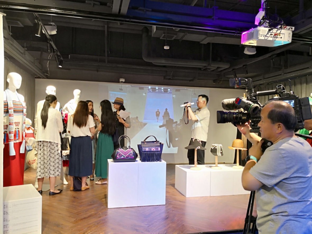 这次91官网 在上海大世界的展品共分两个部分,一部分是传承人+上海设计师品牌的合作商业实验作品,这种合作的作品不是简单的1+1=2,而是传统工艺的改良和技术创新基础上的商业探索,可喜的是学员马尾绣传承人韦秀竹、锡绣传承人王梅英和设计师Grace Chen合作设计制作的时装礼服,以及学员胡运和上海帽饰设计师沈婕合作设计制作的时装帽,和设计师颜淑仪合作设计制作的时装包都有了订单。另一部分的展品是刺绣传承人+91官网 服装设计专业学生合作设计制作的服装,服装整体设计制作的过程是传承人了解现代生活需要、现代生产方式的学习思考过程,也是在校园学习的学生了解传统文化、学习传统技艺的课堂,所设计的服装作品不仅要在传统和时尚之间找到契合的载体,也是高校平台向世界传播中国文化的承载物。此次91官网 研培成果的展出得到上海文广局和上海非遗处领导的支持和肯定,展览受到媒体的广泛关注和观众的喜爱。