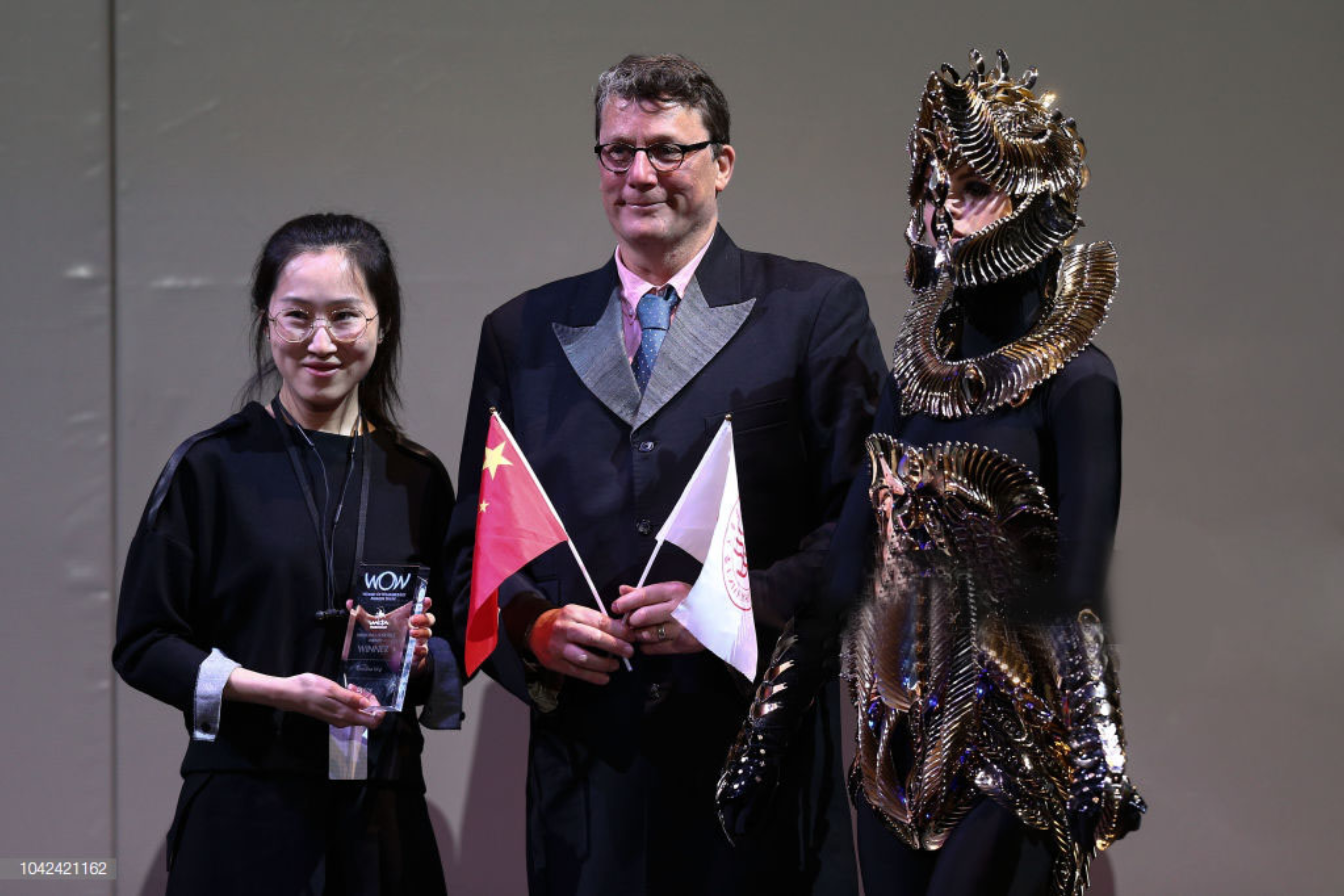 郭晓桐获奖作品《灵骨——Spirit Bone》获得WETA工作室组冠军,这也是郭晓桐毕业五年后通过WOW又一次回到无比热爱的母校的怀抱,由衷的感谢授之以渔但从不限制学生设计思维的参赛指导教师周洪雷老师。张琪瑶设计作品《壳——Shell》获得学生创新组冠军,张琪瑶感谢母校提供了开放式的设计思维氛围,让自己有幸在国际舞台上展示自己的设计理念并得到评委们的认可,不仅开阔了视野更给予我了前进的信心。夏天、羊梦童、贺方钰设计作品《女体炼狱——Feminine Hell》获得DAME SUZIE MONCRIEFF 组亚军,获奖设计师夏天经历了此次新西兰世界可穿着比赛,认识了来自世界各地的优秀的设计师们,见到了久仰的大师们的作品,收获颇丰。