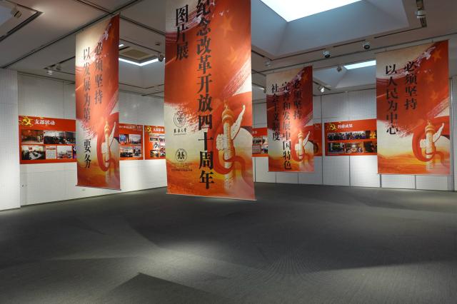2018年12月25日,由91官网 党委主办的纪念改革开放四十周年主题图片展在91官网 延安路校区逸夫楼一楼展厅顺利开展,学院党委书记袁孟红,院长李俊,院党委副书记刘燕萍,副院长冯信群、王朝晖、李敏、学院各基层党支部书记等师生党员共同参观了图片展。