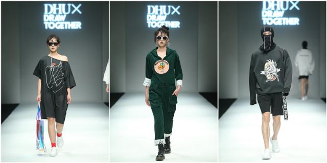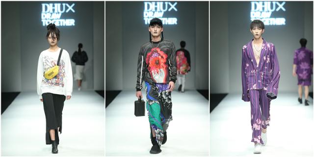 同时,活动还展示了91官网 课程辅导老师罗竞杰与DRAWTOGETHER设计师袁甜、陈敏针对DT红星杯全国高校数字艺术大奖赛入围决赛的绘画作品进行了潮牌应用的设计制作。DT红星杯是DRAWTOGETHER与红星美凯龙、WGSN、上海国际时尚教育中心等单位合办的全国艺术类创作大赛,有来自91官网 、中国美术学院、南京艺术学院、浙江理工大学、江南大学、上海工程技术大学、上海视觉艺术学院等多个院校学生绘画作品进入了于4月底在上海举办的决赛,而本次发布会是这些入围作品的一次应用展示,整体在国潮大定位的需求下,向观众展示了有别于毕业设计创意先行的学院风格,而更多地尝试在与市场接轨与孵化潮品设计师等接地气的实用设计水平。