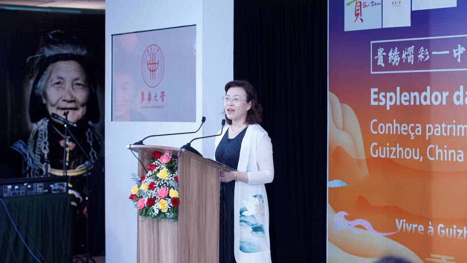 崔运花在致辞中对里约州政府、巴西里约热内卢天主教大学、中共贵州省委宣传部为本次展演提供的大力支持表示感谢。她表示,学校坚持“以学生的全面发展与成才为中心”的办学理念,注重发挥学校特色优势开展人才培养、科学研究、社会服务、文化传承创新、国际合作交流等工作。作为非遗研培成果,本次展演展出的服装,既有东华师生与贵州非遗传承人合作创作,又有91官网 、贵州传承人和英国曼彻斯特城市大学三方合作创作的作品。作品风格各异,既融入传统刺绣等东方元素,又极具时尚和创意,通过东西方、传统和现代文化、理念的碰撞,突出传统技艺与现代设计的融合,把传统刺绣应用到现代服装设计和时尚产品中,使中国传统文化发扬光大。