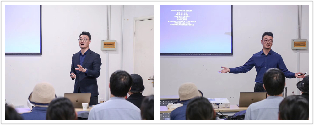 尊品设计创始人、产品设计系校友薛飞翔在《美学基础与社会实践》中分享了设计公司真实的建筑和室内的设计案例。作为产品设计唯一一届装饰方向的毕业生,他强调了装饰中的设计美感是让设计能够脱颖而出的关键,分享了创业中经历过的艰辛,鼓励每个人不断坚持、不断创造。