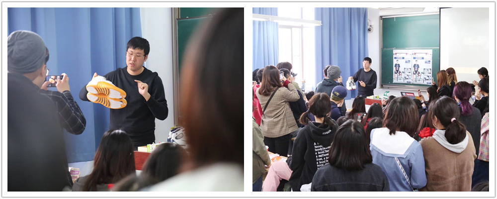 十场专业讲座从4月初开始历时一个月,分别邀请了Faurecia首席设计师王旭,知名球鞋收藏爱好者范耘硕,黄山手绘创始人梁军,润庄品牌咨询执行董事黄智勇,华东理工大学工业设计系系主任王炎,尊品设计创始人薛飞翔,广州红谷皮具研发总监郑杨,全国制鞋标准化技术委员会秘书长张伟娟,上海晨光文具股份有限公司产品经理姜海燕,阿迪达斯配饰设计师陆文婕来校进行分享,堪称一场关于设计的饕餮盛宴。