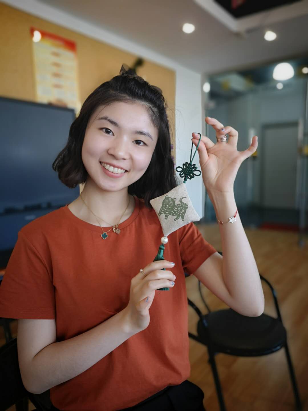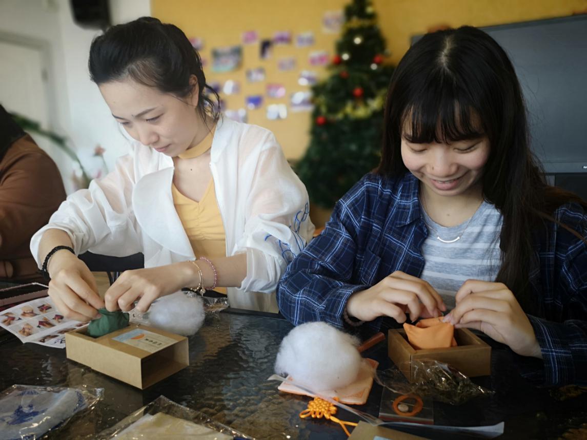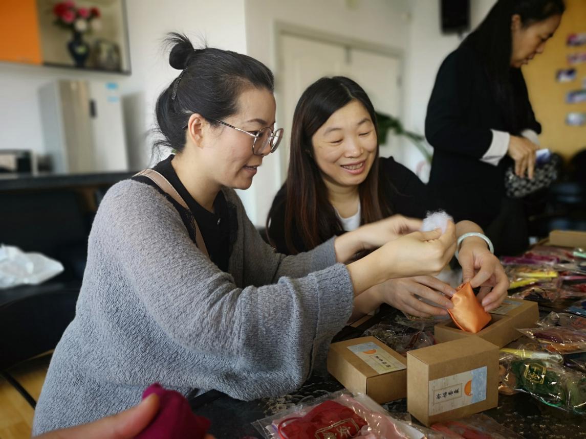 (香囊制作过程,教工欢笑多)